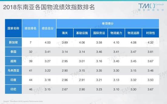 (数据来源:中国产业信息网) 伴随着电商的迅速发展的是对物流日益增高的要求,但东南亚消费者散落各地,地缘环境复杂多变,使得物流的增速难以跟上电商的增速,可以说物流成了东南亚地区的一块心病。根据2018年世界银行的物流绩效指数排名,除了新加坡,其他国家的物流充斥着各种问题,明显难以令人满意。这也意味着在东南亚物流行业还是一块尚待挖掘的宝藏。