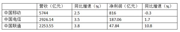 净利润方面,中国移动当期净利润为816亿元,而中国电信和中国联通分别187亿元和48亿元,差别较大。不过,除了中国移动,中国联通和中国电信利润均为正增长,中国联通净利润同比增速达10.8%。中国移动在财报中表示,其第三季度利润继续改善,实现正增长。