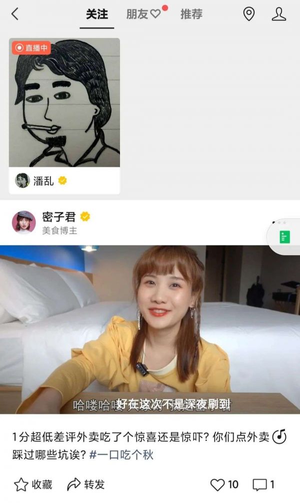 直播功能的上线,则为微信生态内原有玩家提供了新的经营粉丝的工具。创作者可在发起新动态的页面直接选择开启直播或发起直播预告。直播开始后,粉丝可以从视频号“关注”信息流中看到“直播中”的账号。直播账号位置正处于“关注”的下方,以竖屏画面呈现,位置醒目。在自身私域流量范围内,创作者的直播信息可实现较强的触达。