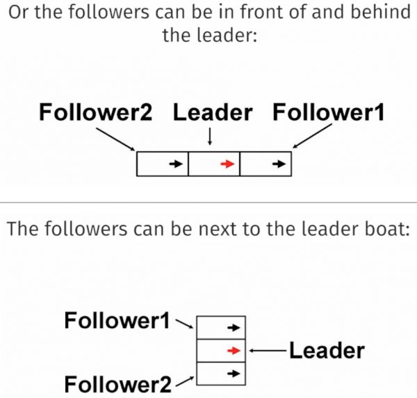 他们也对此进行了实验,实验设定无论是船只“串联”还是“并联”在一起,都是中间的船负责领导船队运行的方向和轨迹。