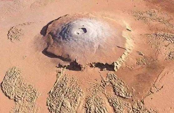 别看现在火星死气沉沉,它曾经也有火山喷发的!火星上有太阳系已知的最高、最大火山——奥林匹斯山,高度超过21.9千米。就连地球上最高山峰珠穆朗玛峰(海拔高度8848米)也还不到它的1/2。奥林匹斯山是盾状火山,宽约600公里,占地约30万平方公里,可想而知火星上的这座火山有多大!