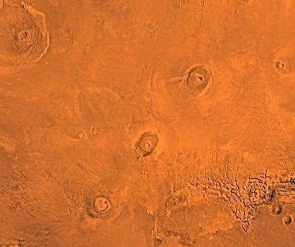 奥林匹斯山附近的巨型火山(图片来源:NASA)