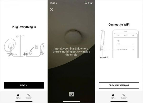 没错,随着测试服务推出,SpaceX也正式发布了Starlink配套app,幸运的首批测试用户可以按照app里的教程一步步完成选址、遮盖检测、大锅安装、路由器连接等步骤。
