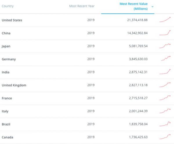根据世界银行排名,2.8万亿美元能挤进去年全球经济体十强,相当于英国2019年的GDP。
