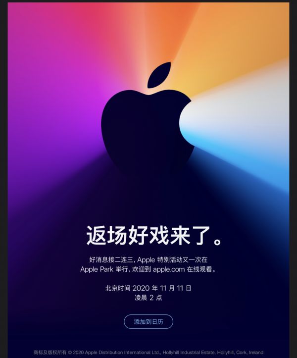 昨晚,苹果对外发布邀请函,将今年第三场秋季线上发布会的时间定在了北京时间 11 月 11 日的凌晨 2 点。