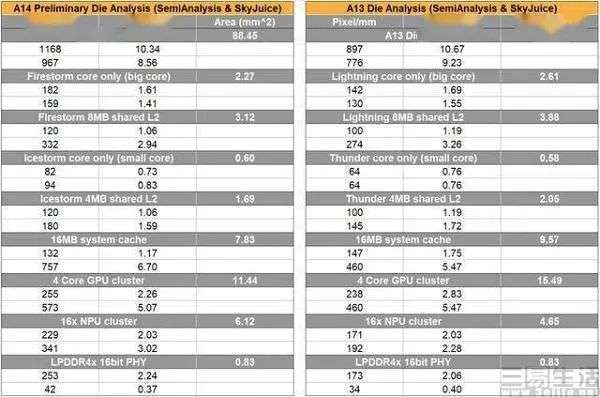 在早前曝光的A14芯片电子显微照片分析中曾提及,A14的Icestorm小核有着大幅改动。其L1i cache(一级指令缓存)从A13中Thunder小核的96KB扩展到了128KB,L1d(一级数据缓存)也从48KB增长到64KB,ipc(进程间通信)基本已经达到了cortex-A76的水平。因此这也被认为是苹果通过增加缓存容量的方式,在没有调整微架构的情况下,为A14提供了性能与功耗上的平衡。