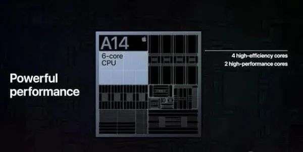 在今年的A14上,其由2枚Firestorm大核和4枚Icestorm小核组成CPU部分,再加上新的四核GPU,相比于A12其CPU性能提升40%,GPU性能提升30%。由于在去年的A13上,苹果声称A13比A12的性能提高20%,因此如果简单换算不难得出,A14的CPU性能比A13提升大约16%左右,GPU方面则提升了8.3%。对此有观点认为,导致这一结果的原因或许是苹果吸取了此前A13上峰值功率过高的问题,因此其对温度和降频更加敏感,而在A14上则更看重功耗控制,以及关注日常使用时的性能释放。