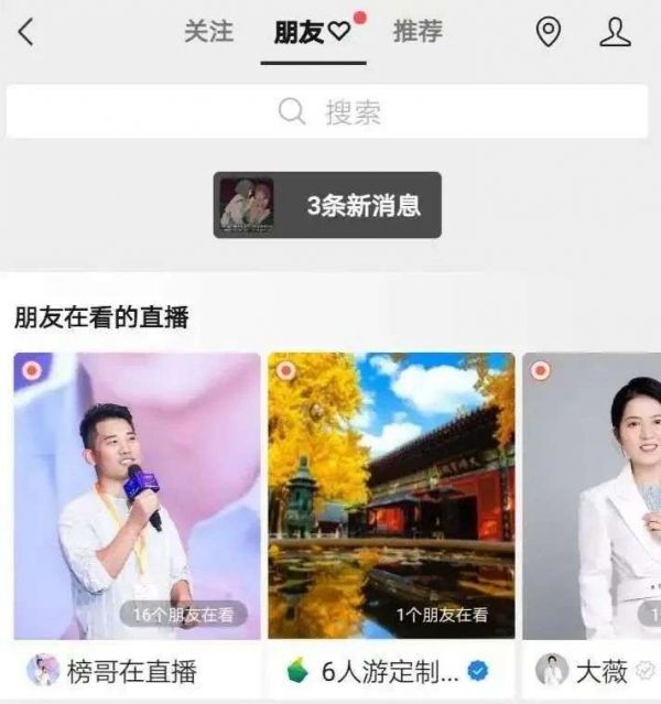视频号近几个月来动作连连,就在前几天,还有同行爆料微信视频号上线“朋友在看的直播”功能,也就是说,用户可以在视频号的“朋友”页面看到“朋友在看的直播”。