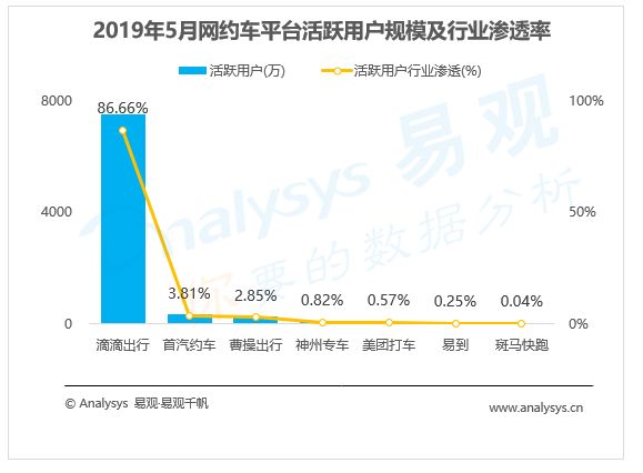 虽然仍旧一家独大,但决不能坐吃山空。根据Trustdata大数据发布《2020年上半年中国移动互联网行业发展分析报告》。报告显示,2020年6月,在网约车头部平台中,滴滴行业地位依旧稳固,首汽约车及曹操出行排名紧随其后。可如果我们再参考去年易观发布的数据统计,纯聚合类平台似乎是对滴滴的市场份额形成一定程度的“挤出”。
