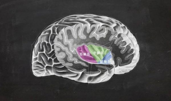 前脑岛(蓝色区域)。| 图片来源:Schappelle/Wikimedia Commons