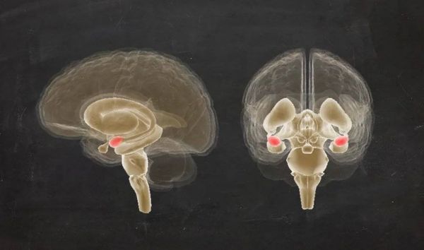 杏仁核(红色区域)。| 图片来源:Life Science Databases(LSDB)/Wikimedia Commons