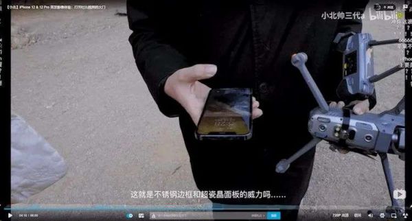 比如说,在视频博主EverythingApplePro的测试中,无论iPhone 12还是iPhone 12 Pro,其正面的屏幕玻璃均成功承受住了高达3米的跌落高度完全没有损坏;在手机产品保险公司Allstate Protection Plans的测试中,iPhone 12成为了有史以来抗跌落表现最好的机型;而最夸张的跌落成绩来则自于一位B站UP主小北,在他的测试中,这位专业摄影师搭载了iPhone 12 Pro的无人机在三十米高的空中突然失控坠机,手机在空中与无人机分离后直接跌落地面,结果却几乎毫发无损——无论是正反两面玻璃,不锈钢边框还是手机功能本身都一切正常。