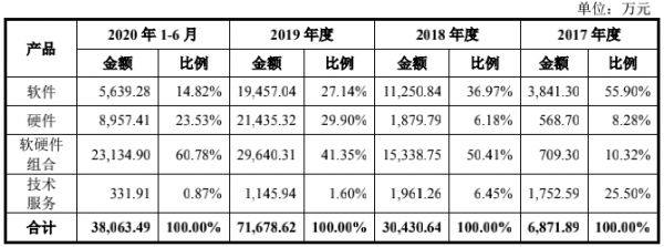 硬件及软硬件组合的解决方案营业比例上升,收入高速增长,实现高速复合增长达223%