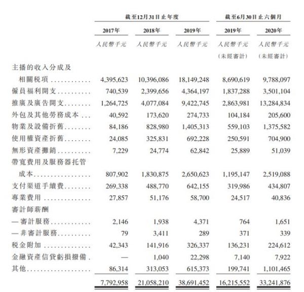 我们可以看出,给主播的分成成本增长相对稳定。由于员工数和用户数的增加,雇员福利开支和宽带费用大约翻倍。而广告费用今年增长了超过100亿元,在上市前急速地吸引用户。