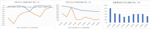 阿里云、数字娱乐业务净利润率和营收增长情况,数据来自财报,制图:36氪