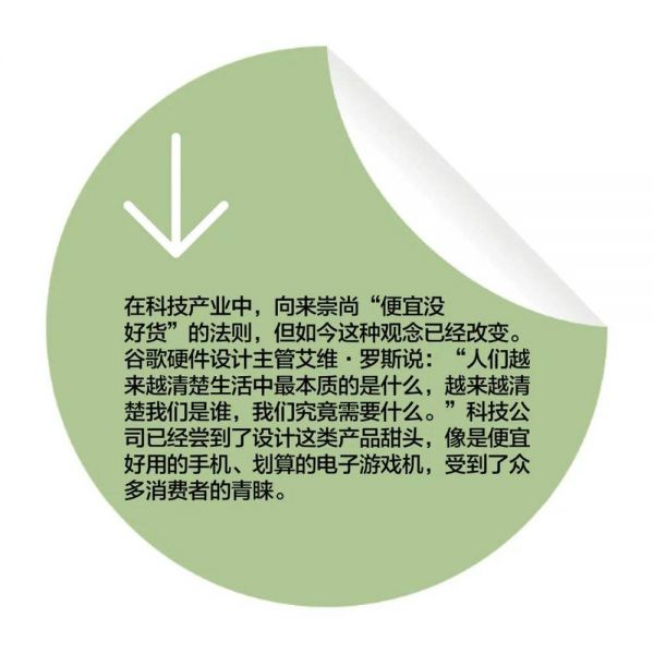 需要明确的是,新实用主义产品和几年前那种低科技含量的的极简主义产品并不是一回事。几年前生产极简主义产品是为了抵消注意力经济带来的不良影响,包括一些太过苛刻的顾客需求。鉴于人们经常被海量的信息淹没,一些公司推出了几乎没有什么功能的手机,比如“哑巴手机”。使用哑巴手机仍旧可以保持联络,但因其只具备电话与短信等基础功能,使用者便不会有被信息轰炸的感觉。