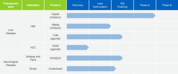 除慢性乙肝治疗领域,「挚盟医药」的研发管线也涉及脑卒中、癫痫、疼痛、抑郁症等神经系统疾病的治疗领域,并有多款小分子创新药已经处于临床申报研究阶段,预期将于明年进入临床研究。据悉,「挚盟医药」将在2021年底前完成一款癫痫治疗药物和另一款抗乙肝病毒药物的临床申报。