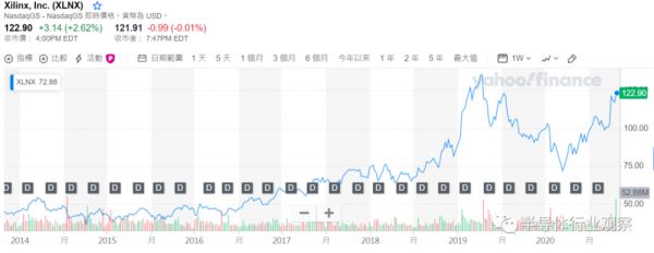 对于Xilinx 来说,最近几年并不容易,中美之间贸易战的持续影响加剧了半导体销售的正常周期性下滑。这几年赛灵思不断过渡,平台构建是一条众所周知的道路,赛灵思已从单纯的现场可编程门阵列(FPGA)卡生产商转变为“平台公司”。赛灵思在2015年10月的股价47美元,如今在122美元左右,近5年涨幅为159%。而如今,被AMD收购之后,两家又能擦出怎样的火花呢?