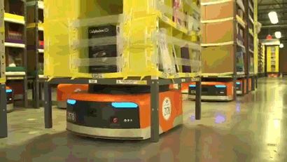 正在亚马逊物流仓库中工作的Kiva