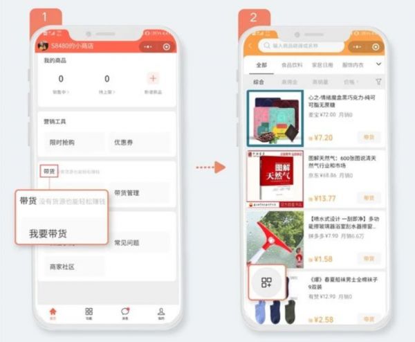 在无货源带货体系中,创作者可以在「小商店助手」中找到「我要带货」按钮,通过自己的定位和需求筛选高佣金或是高销量的商品,创作者也能自行搜索商品进行带货。