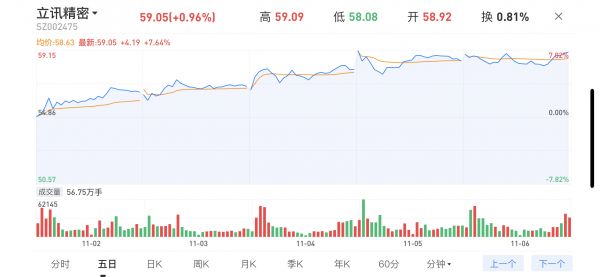 但当召回耳机转单的消息传出后,加之11月2日立讯精密完成可转债发行网上路演等利好消息,其近五日股价稳步上涨。