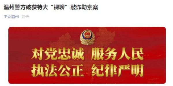 温州市公安局通过其微信公众号“平安温州”发布通报称,近日,温州苍南警方打掉特大网络“裸聊”敲诈勒索黑恶势力团伙,查获团伙成员500余人,受害者遍及全国各个省市,高达十余万人甚至有受害者为此家破人亡,这或是目前警方破获的全国最大网络“裸聊”敲诈勒索案。