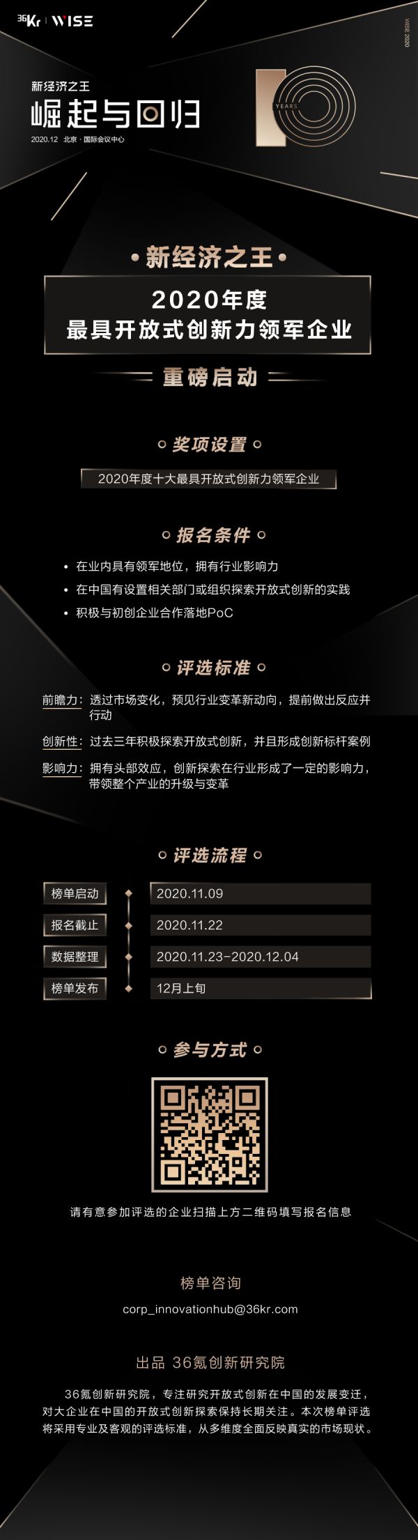 年度重磅!36氪「开放式创新」系列榜单评选正式启动,寻找年度创新力量