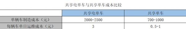 据晚点 LatePost报道可知,共享单车的每辆制造成本基本在700-1100元左右,但对于共享电单车而言,这个成本就高达2000-2500元;而在运维成本方面,前者每日只需开销0.5-1元,而后者就需要3元。除此之外,一块续航70公里的电池成本在1000左右。