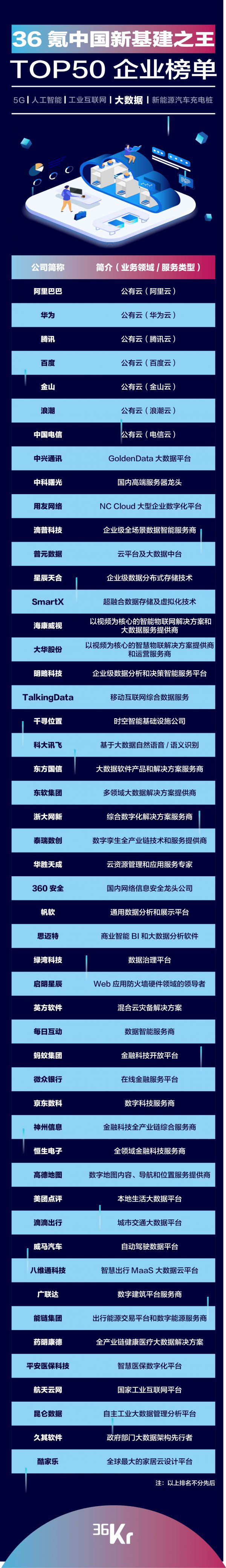 重磅发布!36氪中国新基建之王「大数据领域」TOP50企业揭晓