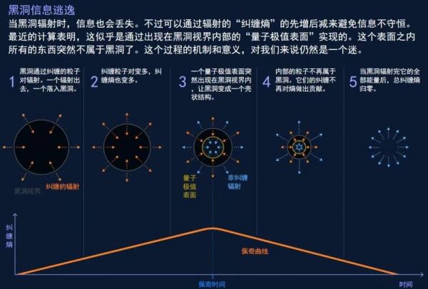 他们还发现随着黑洞的蒸发,原本黑洞深处的粒子不再是黑洞的一部分,而成为辐射的一部分。粒子并没有飞出黑洞,只是被重新分配了。正是这些内部粒子造成了黑洞和辐射之间的纠缠熵。如果不再是黑洞的一部分,它们就不再对熵有贡献,这也解释了为何熵为何开始减少。