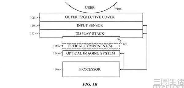 目前,行业中主流的商用屏幕指纹技术因为屏幕是以可见光来存取数据并做出分析,所以在光源不同的环境下可能会出现误报的情况,使得其准确率并不是特别高。而按照苹果方面的这一专利显示,这套光学成像系统由于显示元件将用于发射可见光,光敏元件就会被调整为检测红外光,使得该系统不会因光源的不同而出现误报,因此理论上在识别率方面将有着大幅的提升。