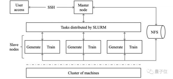 主节点通过SLURM,将工作负载并行和异步地分配给对应请求和可用资源的从属节点。