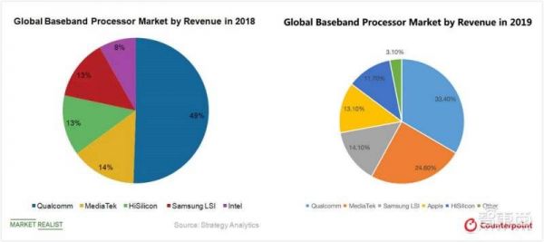 ▲右-2019全球手机芯片市场排名(图源:Counterpoint)