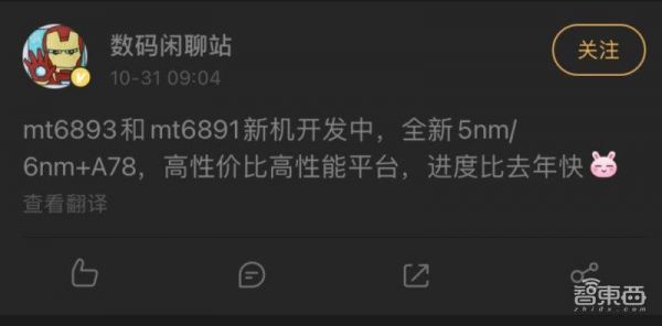 10月31日,数码博主@数码闲聊站爆料,联发科正开发两款芯片mtk6893、mtk6891,将采用全新5nm/6nm工艺,进度快于去年。考虑到这位博主曾多次押准手机产业链消息,有关联发科5nm芯片的消息也较为可信。