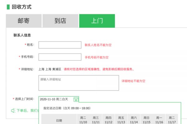 如果有旧机需要回收,这三家平台基本都支持上门取件和邮寄的回收方式,并没有体现出较大差距。