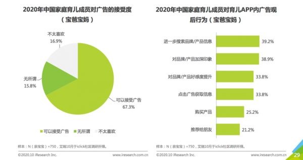 这种信任直接体现在平台推荐的其他母婴品牌更容易被用户接纳。数据显示,接近85%的宝爸宝妈并不排斥育儿APP中的广告,有的甚至还会在看到广告后主动搜索并购买。