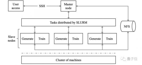 主节点通过SLURM,将工作负载并行和异步地分配给对应请求和可用资源的从属节点。