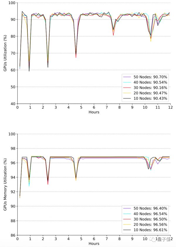 接下来,是在不同规模机器下,GPU及其内存利用率的相关评估。