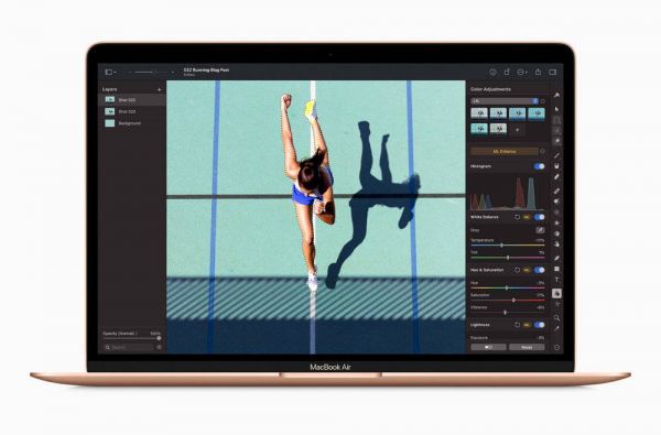 首先是 MacBook Air,采用无风扇设计,更加安静,相比于上一代,CPU 性能提升 3.5 倍,GPU 性能提升 5 倍,机器学习能力提升 9 倍,固态硬盘的性也提升了 2 倍。