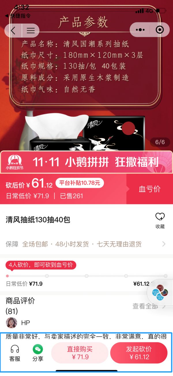 是不是看糊涂了?来总结一下,就是在小鹅拼拼上,有的商品只能拼团,不能单买;有的商品只能单买,不能拼单;没看到商品兼具单买和拼团两个功能。