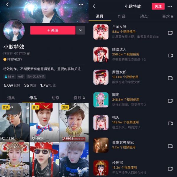 特效师们愈发重视对个人抖音账号的精细化运营。上线一款新道具后,特效师会立刻拍摄一版视频,一方面是为了给用户做个范例,另一方面也是为了能够显示在“道具聚合页”的置顶位置。
