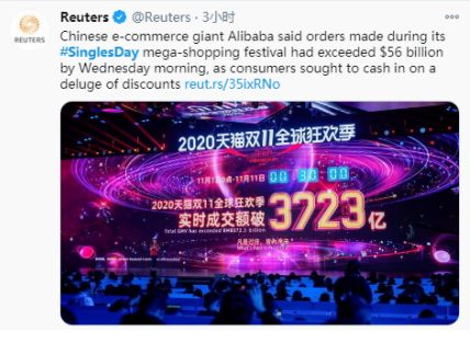 据悉,在11月1日开始的前111分钟内,耐克、苹果等100个品牌成交额突破1亿元。雅诗兰黛天猫旗舰店成为首个销售额突破10亿元的俱乐部旗舰店。彭博社称,国外消费品牌也在依赖阿里巴巴进入中国消费市场,鉴于其他国家和地区的大多数经济体正在与新冠肺炎作斗争,谋求经济复苏,因此今年外国消费品牌想要在中国消费市场占据一席之地的愿望更加强烈。
