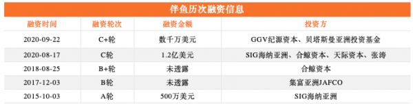 目前,伴鱼已经经过了5轮融资,投资方包括SIG海纳亚洲、合鲸资本、大众点评网网创始人张涛、GGV纪源资本等,投后估值超过50亿元。
