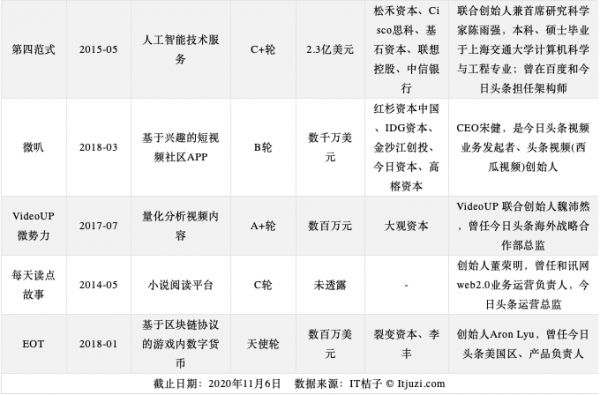 截止日期:2020年11月6日数据来源:IT桔子 © Itjuzi.com