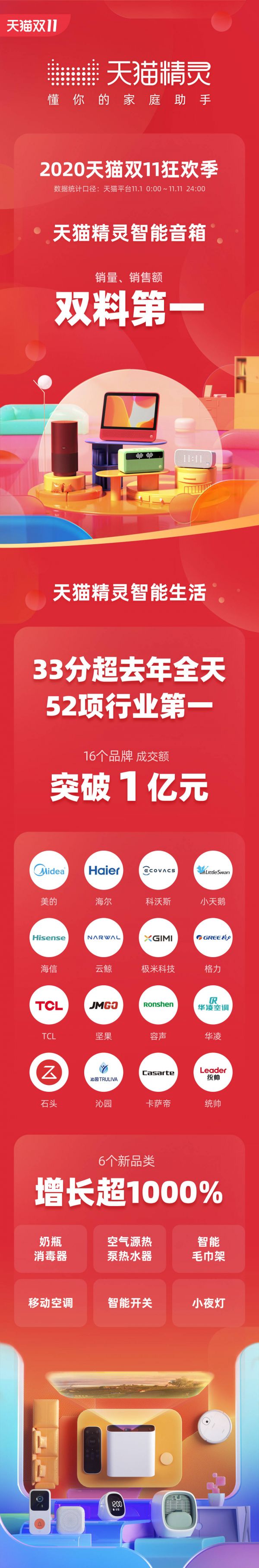 天猫精灵公布双11战绩:智能生活33分超去年全天 音箱双料第一