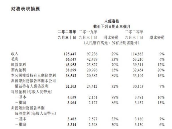 腾讯控股:第三季度净利润385.4亿元
