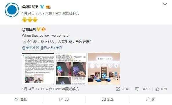 “第一台”、“折叠屏手机”这八个字怎么看怎么刺眼,柔宇展开了反击。
