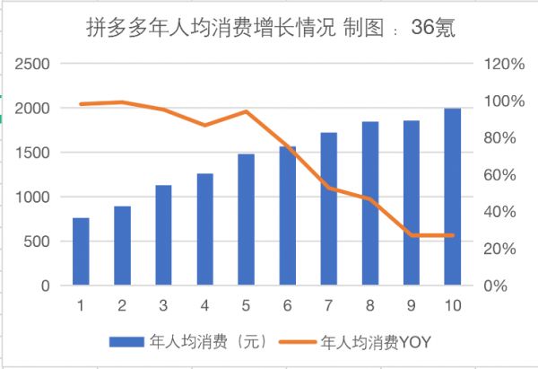 拼多多此前想出的办法是,转向低单价但高频次的日用品类,但如今看来,这个策略还不够奏效,拼多多年人均消费虽然增长了,但同比增速没有得到提升。