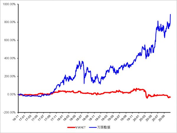 其中第三方运营商的佼佼者当属万国数据(NASDAQ:GDS/HK:09698),2016年奔赴纳斯达克后开启“千金难买牛回头”的走势,在4年内一口气狂涨了10倍,市值达到170亿美元。万国数据在不为国内投资者关注的角落,成为闷声发大财的典型代表,号称“IDC第一股”。