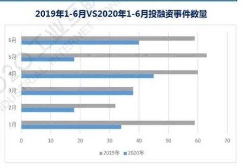 需要指出的是,相比于2019年,今年上半年工业互联网领域的投融资数量还是出现了明显的下滑,除3月持平外,其他各月的数量下降均在30%以上,5月份甚至不及去年同期的三成。